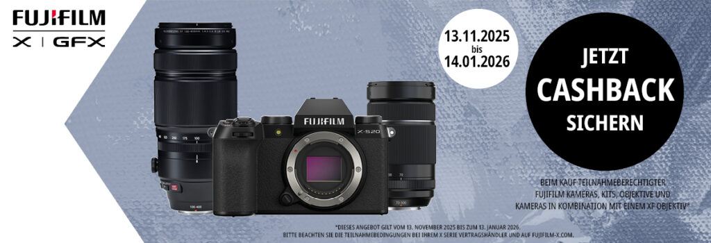 Im Zeitraum vom 13.11. bis 14.01.2026 gibt es bis zu 400€ Cashback auf folgende Fujifilm Artikel.