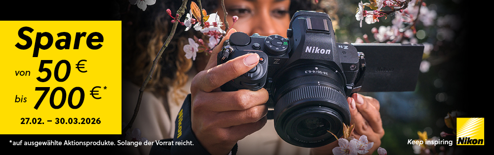 Im Zeitraum vom 27.02. bis 30.03. gibt es bis zu 700€ SOFORTRABATT auf folgende Nikon Kameras und Objektive!