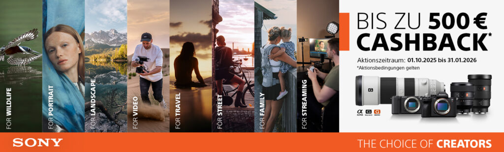 Im Zeitraum 01.10. bis 31.01.2026 gibt es bis zu 500€ CASHBACK auf folgende Sony Produkte